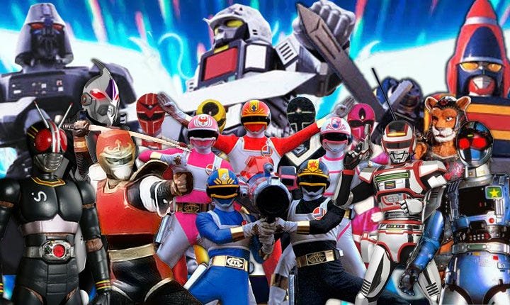 Conhecida no Brasil por ter dado origem a Power Rangers, essa franquia traz equipes coloridas de heróis que enfrentam vilões e monstros gigantes.